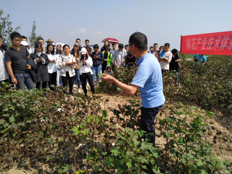 图1 在国家棉花产业技术体系大荔县示范田学习棉花育种与栽培生产知识