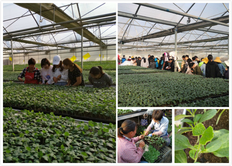 图5 在大荔(冯村)现代农业园区学习基质育苗与南瓜砧木嫁接技术