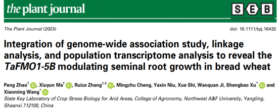 2023年9月15日,365上市集团官网许盛宝教授团队在《The Plant Journal》上发表了题为“Integration of genome-wide association study, linkage analysis, and population transcriptome analysis to reveal the TaFMO1-5B modulating seminal root growth in bread wheat”的研究论文,挖掘到一个新的调控小麦苗期根系生长的基因—TaFMO1-5B,并评估了其对农艺性状的影响,为小麦根系结构的遗传改良提供了新的基因资源。