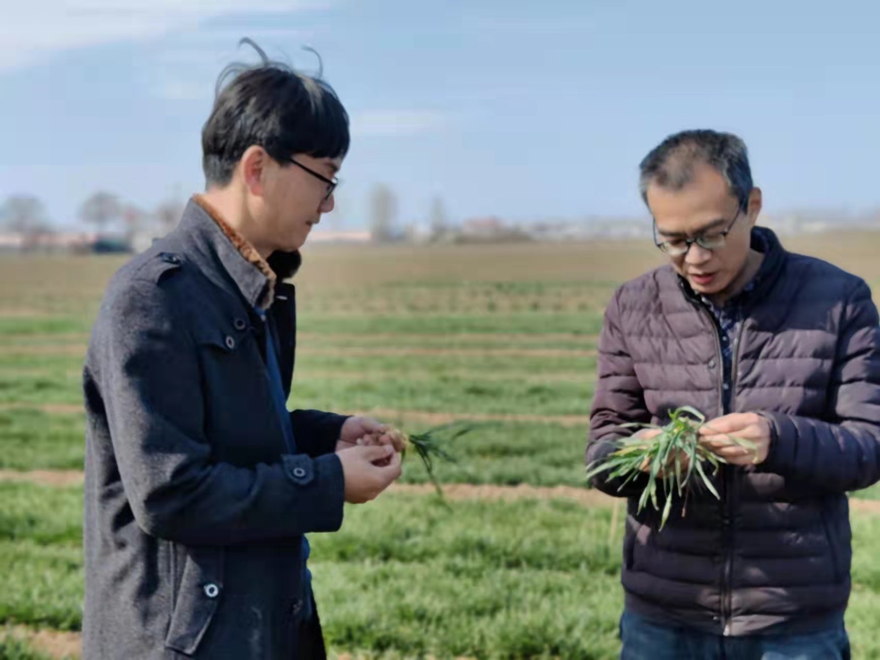 图1:宋志均研究员、韩勇研究员在进行苗情调查指导