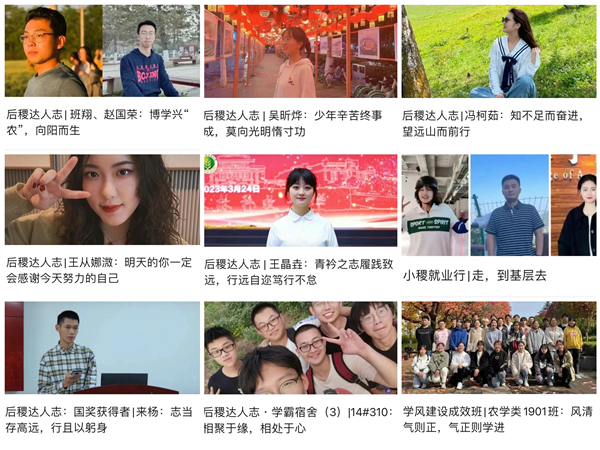 以典型培育为驱动,搭建网络思政育人平台。表彰并宣传一批先进个人与集体,依托新媒体平台,打造公司特色“后稷达人志”专栏,定期推送榜样事迹,对公司保研学子、国家奖学金获得者、学霸宿舍、先进班集体、优良学风示范班进行宣传展示,分享个人学习经验与班级学风建设经验,树立榜样,营造公司整体“比学赶帮超”氛围,通过“一线挖掘-持续培育-宣传表彰”三步工作法,形成一个典型带出一批典型的“葡萄串效应”,立体式、多维度、全方位激发员工学习兴趣和内生动力,持续增强学风建设效能。