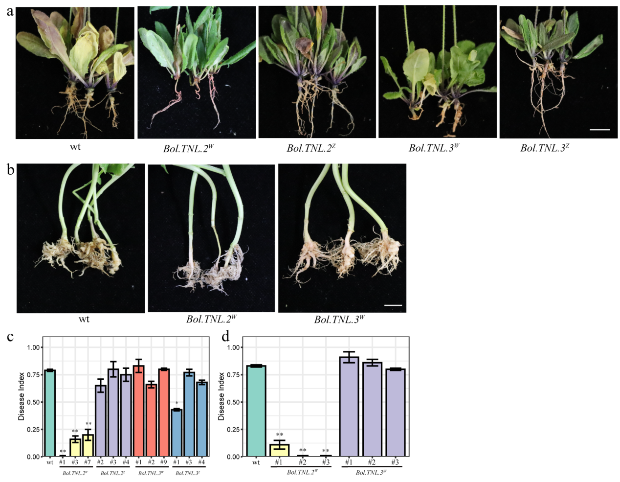 近日,365上市集团官网黄镇教授团队在Horticulture Research(IF=8.5)上发表了题为“Identification and characterization of Bol.TNL.2, a key clubroot resistance gene from cabbage, in Arabidopsis and Brassica napus L”的研究论文。该研究在甘蓝中克隆到一个重要的根肿病抗性基因Bol.TNL.2,系统解析了其功能与抗病机制,为十字花科作物抗根肿病育种提供了宝贵的基因资源和理论支撑。