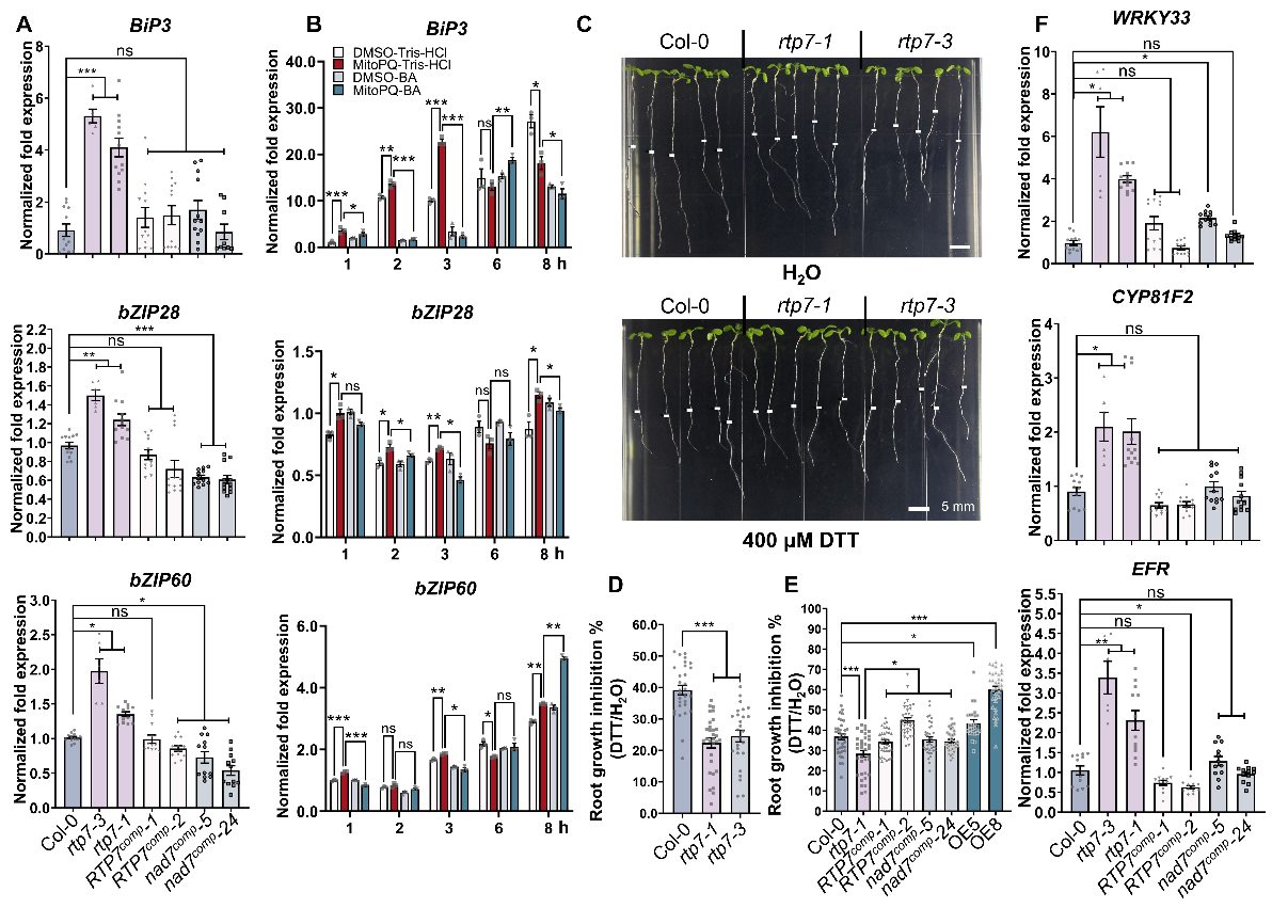 365英国上市公司官网单卫星教授课题组前期发现并揭示了线粒体RNA加工因子PPR蛋白RTP7是植物免疫的负调控因子,通过影响线粒体复合体I nad7亚基转录本的内含子剪接,调控线粒体复合体I的活性和mROS水平;发现高水平mROS,而非质外体ROS和叶绿体ROS,是rtp7抗病突变体对多种不同类型病原菌以及非生物盐胁迫表现抗性的关键因素,系统证明了mROS参与调控植物对生物和非生物胁迫的广谱抗性(Yang et al. Plant Cell,2022)。