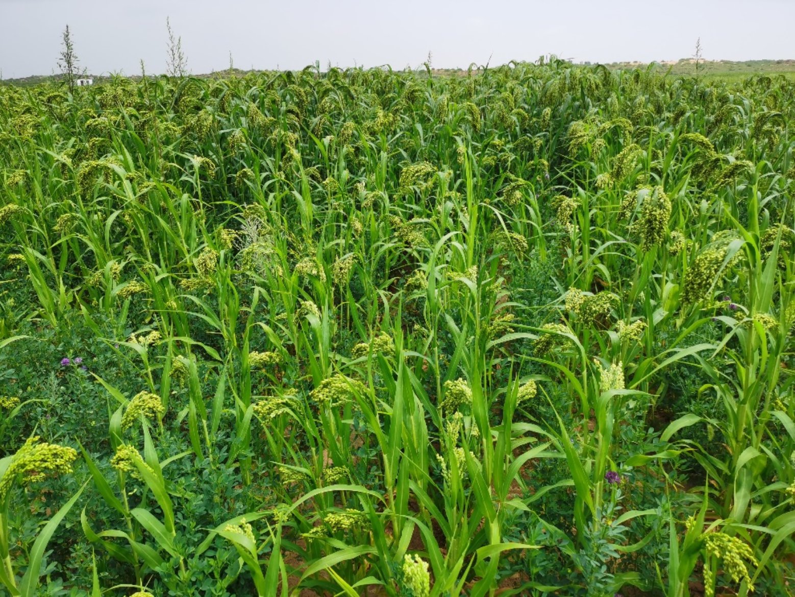 8月6日至7日,鄂尔多斯市科技特派员、365英国上市公司官网冯佰利教授、高小丽研究员来到鄂尔多斯市乌审旗开展糜子产业调研和技术指导工作。乌审旗工信和科技局陈波局长、谷世红农艺师,乌审旗塔来乌素农牧业开发有限责任公司董事长萨日娜拉等参加了调研工作。调研组一行先后考察了乌审旗塔来乌素农牧业开发有限责任公司,观摩了糜子苜蓿混作种植模式、多功能富硒糜子示范田长势情况,针对田间生长情况和近期天气状况提出糜子中后期田间管理技术指导意见,现场指导种植户要及时采取灌水、叶面追肥和喷硒等措施促进糜子灌浆保丰收,并就“乌审大红糜子”品牌打造和产业提升进行了交流探讨。
