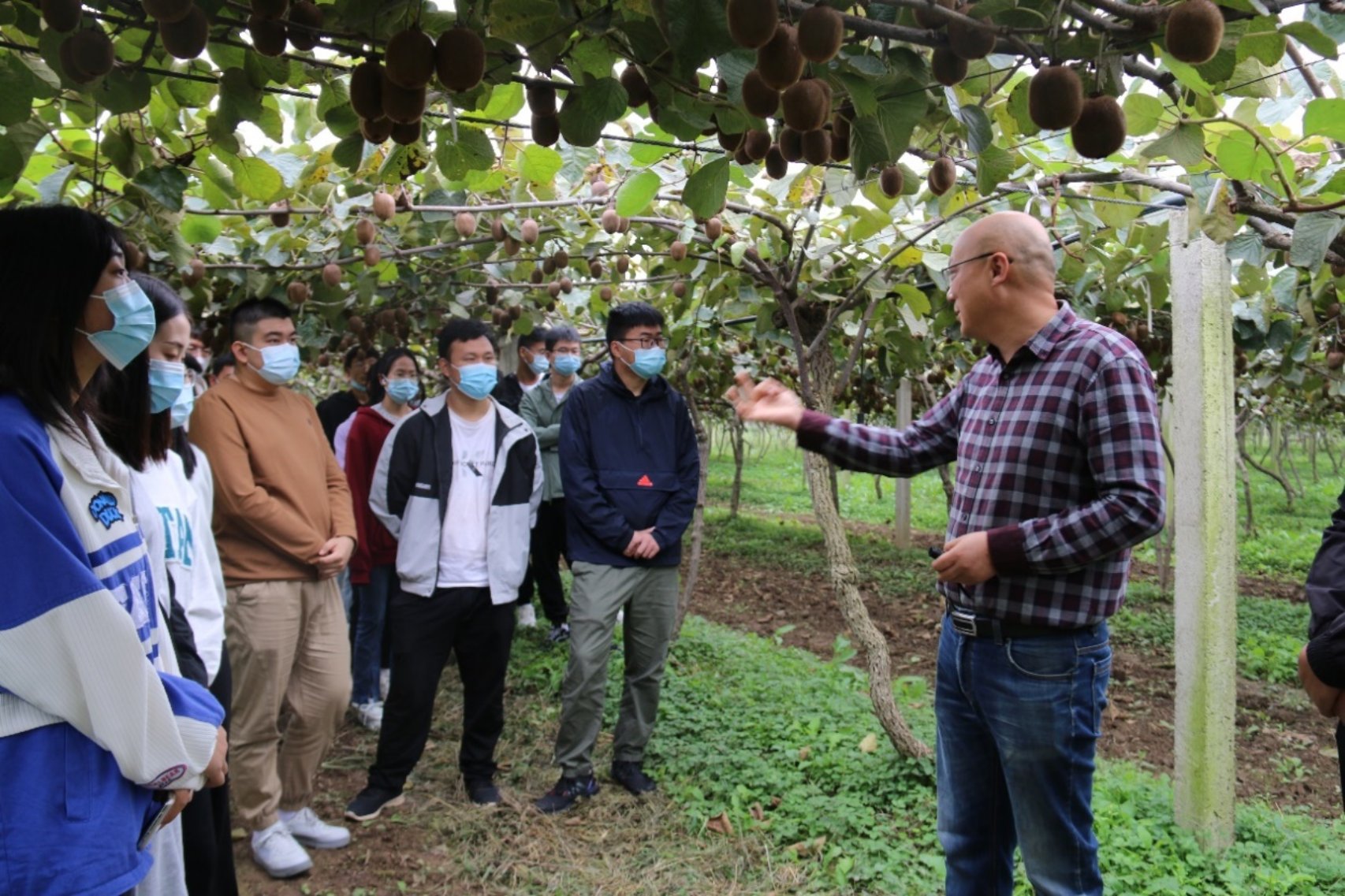 其后,同学们来到陕西百恒有机果园有限公司进行实习。在百恒有机猕猴桃果园,公司的创始人王小铁先生向同学们全方位介绍了猕猴桃的前世今生、发展现状、产业前景等诸多方面。小小的猕猴桃,带来了巨大的效益。在王先生对于猕猴桃的介绍中,同学们对于投身农业的光明前景充满了信心,也对王小铁先生投身农业的情怀感到敬佩。