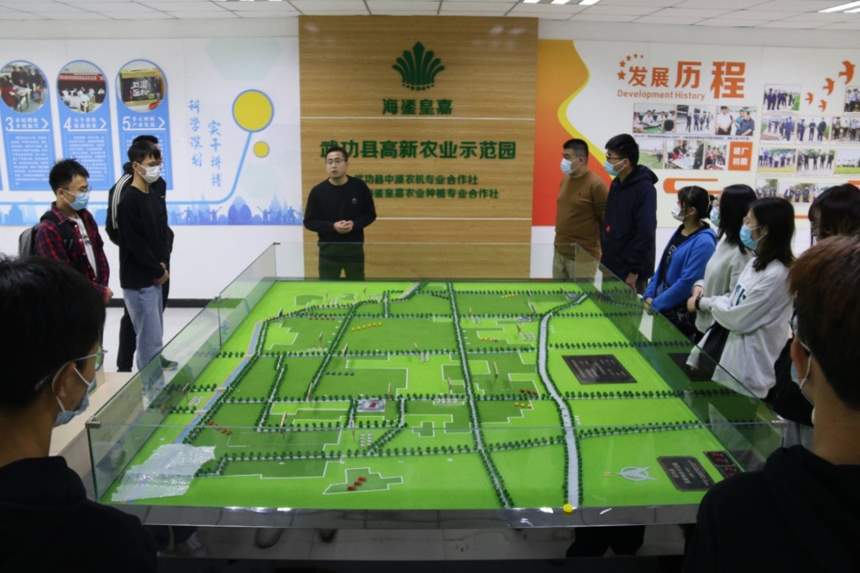 实习的第一站,老师带领同学们来到了武功县海鋈皇嘉粮食高新农业示范园。据示范园负责人介绍,公司主要进行农业机械设备以及粮食作物生产经营。在负责人的带领下,同学们了解并且参观了大马力拖拉机、旋耕机、喷雾机等大型农业机械设备。公司的机械不仅用于公司的土地的农作,同时也服务于周边的农户,这种运营方式不仅解决了周边农户耕种收获等方面的问题,同时也增加了公司的收益。这样的经营方式,很好的平衡了成本与效益的关系,令同学们耳目一新。