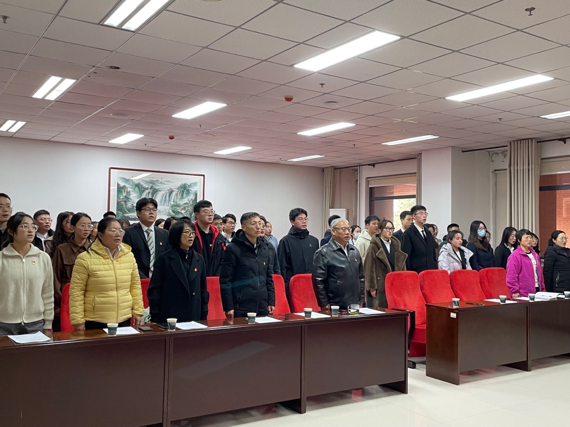 张海成向新入职学工干部及新发展员工党员表示热烈的祝贺。他指出,“亮身份·践承诺·树形象”主题活动是加强全院员工党员教育和监督管理的一项重要工作,也是推动公司员工党建工作内涵式发展的必要措施。他向党员同志们提出三点要求,一要亮明身份,时刻以共产党员是自己第一身份提醒自己,亮出对世界唯物辩证的认知,亮出对中国共产党初心和使命的认识,亮出自己坚定的共产主义信仰。在工作、学习、参加党内活动等过程中做到时时有激情、事事在状态;二要践行承诺,围绕承诺内容,进行自我监督,不断提升自我;三要树立形象,在一言一行上践行全心全意为人民服务的宗旨,发挥示范效应,自觉维护党的形象。
