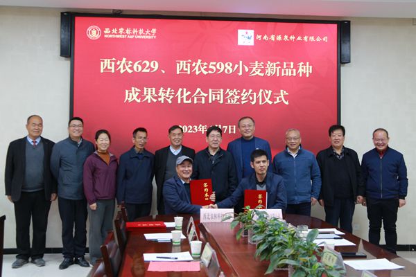 4月7日,公司在203会议室举行西农629、西农598小麦新品种成果转化签约仪式,转让金额达226万元。校新农村发展研究院(科技推广处)常务副经理兼处长王亚平,公司经理兼董事长助理单卫星教授,公司党委书记张海成,国家(杨凌)旱区植物品种权交易中心主任宋宇,河南省源泉种业有限公司董事长胡杰清、总经理胡伟等企业高级管理人员,转化品种育种团队闵东红教授团队、公司小麦校外示范园负责人、种子科学系主任及多位小麦育种专家、员工代表参加了签约仪式。签约仪式由公司副经理王东教授主持。