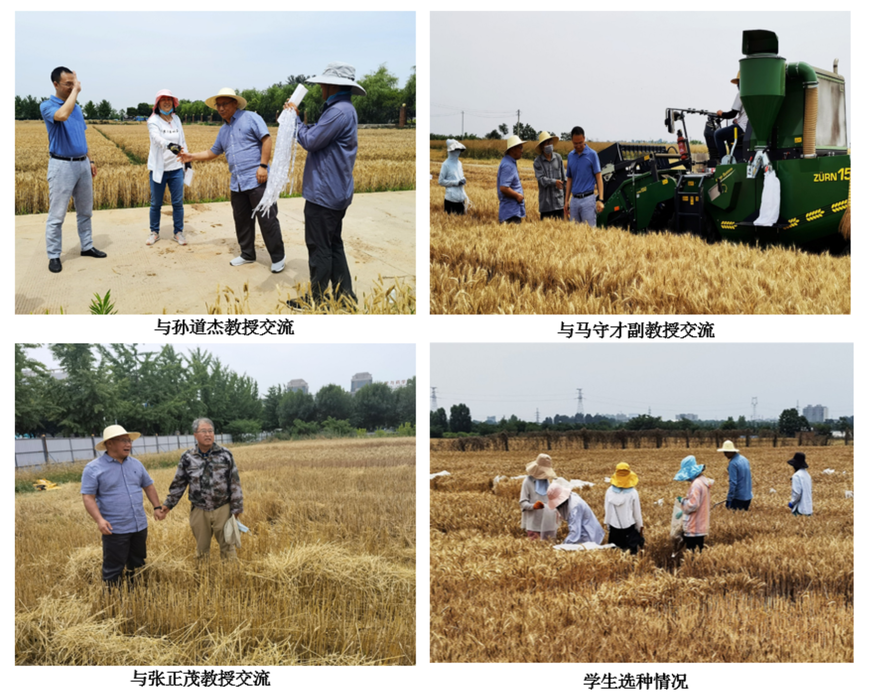 在夏收现场,张海成书记与吉万全、高翔、闵东红、张正茂、李学军、孙道杰、韩德俊、奚亚军、张晓科、韩清芳、马守才、于澄宇等小麦、油菜育种专家进行交流,对夏收情况、品种选育等工作进行了解,并代表公司对各位育种专家的辛勤付出表示感谢,对参加夏收工作的员工提出“要发扬育种优良传统,传承育种精神,培养艰苦奋斗的爱农情怀,继续续写西农人诚、朴、勇、毅的优秀品质”的期望。