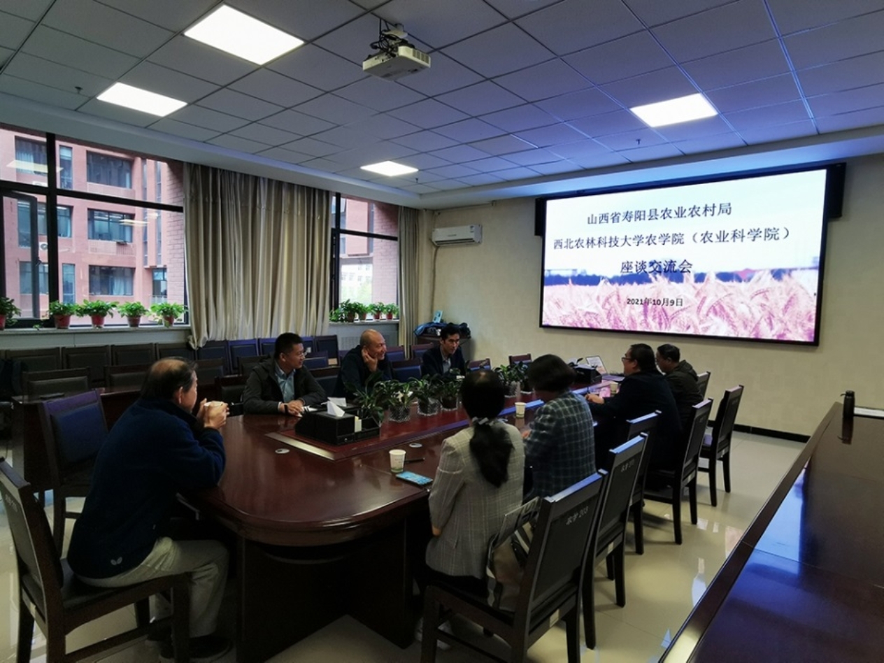 10月9日,山西省晋中市寿阳县农业农村局局长庞广生、寿阳县景尚乡党委书记范春辉、中国农业科公司农业环境与可持续发展研究所副研究员孙东宝一行三人到公司进行考察座谈,公司冯永忠副经理、贾志宽教授、韩清芳教授、何一哲教授、高小丽副教授参与座谈。